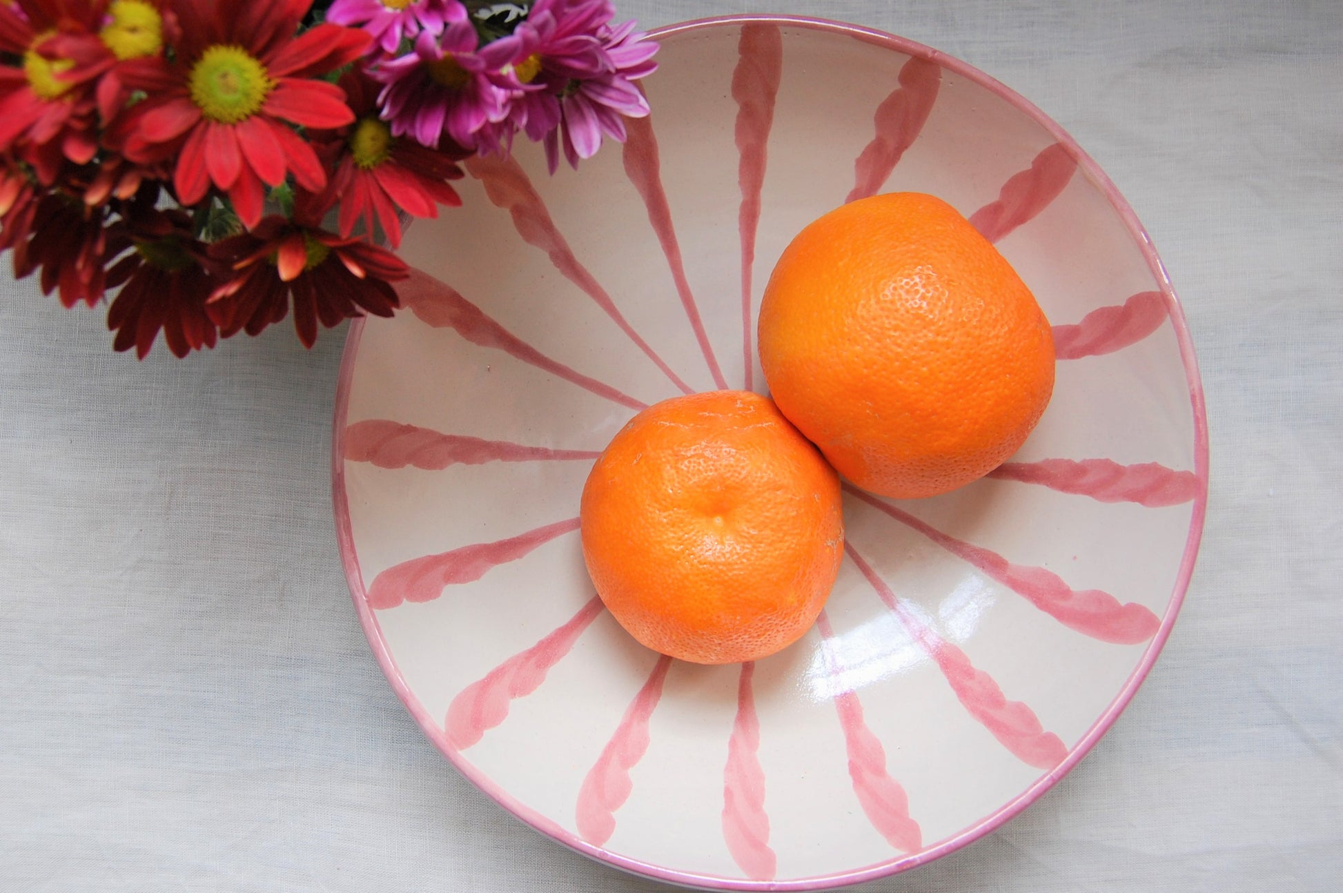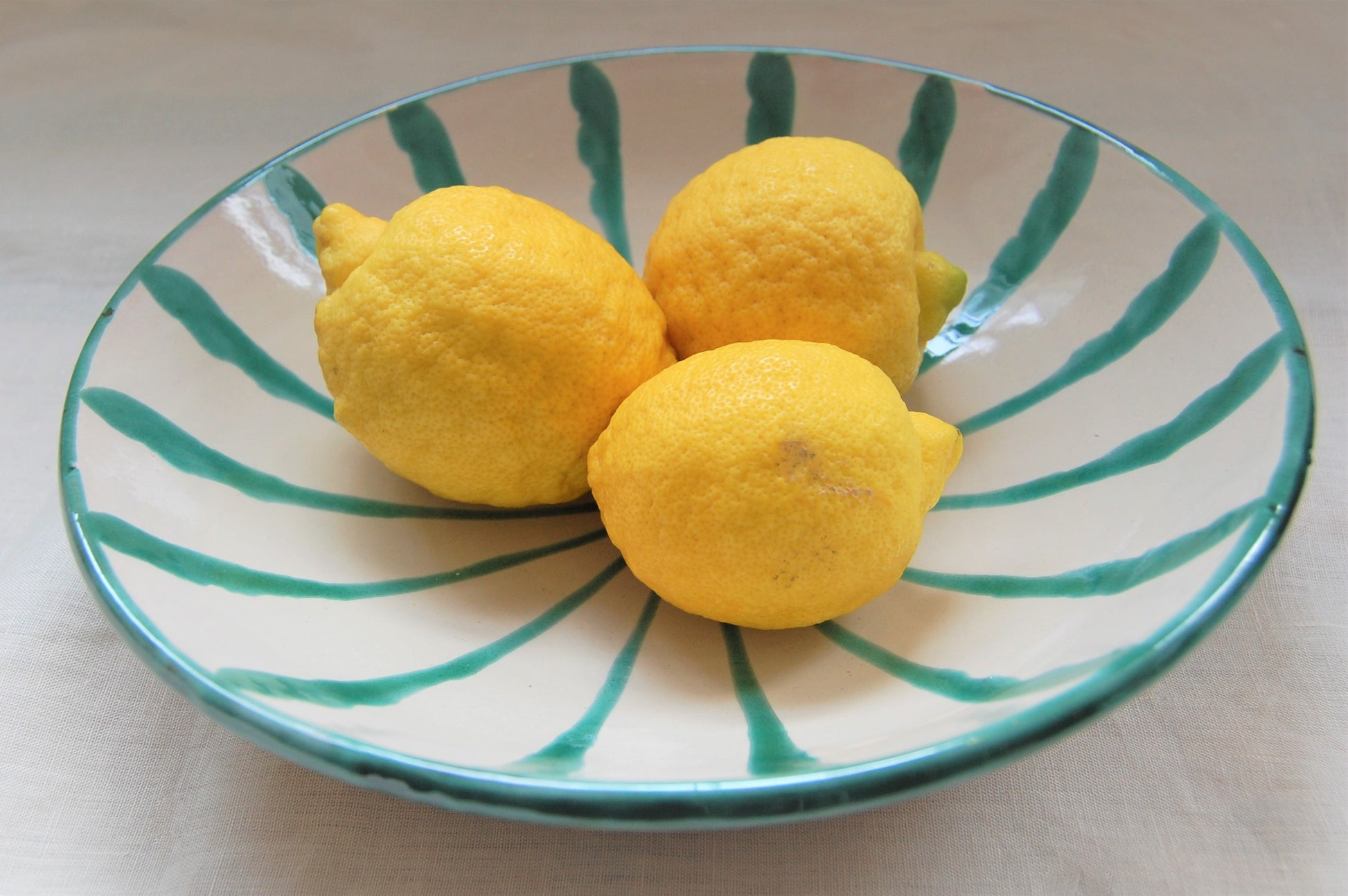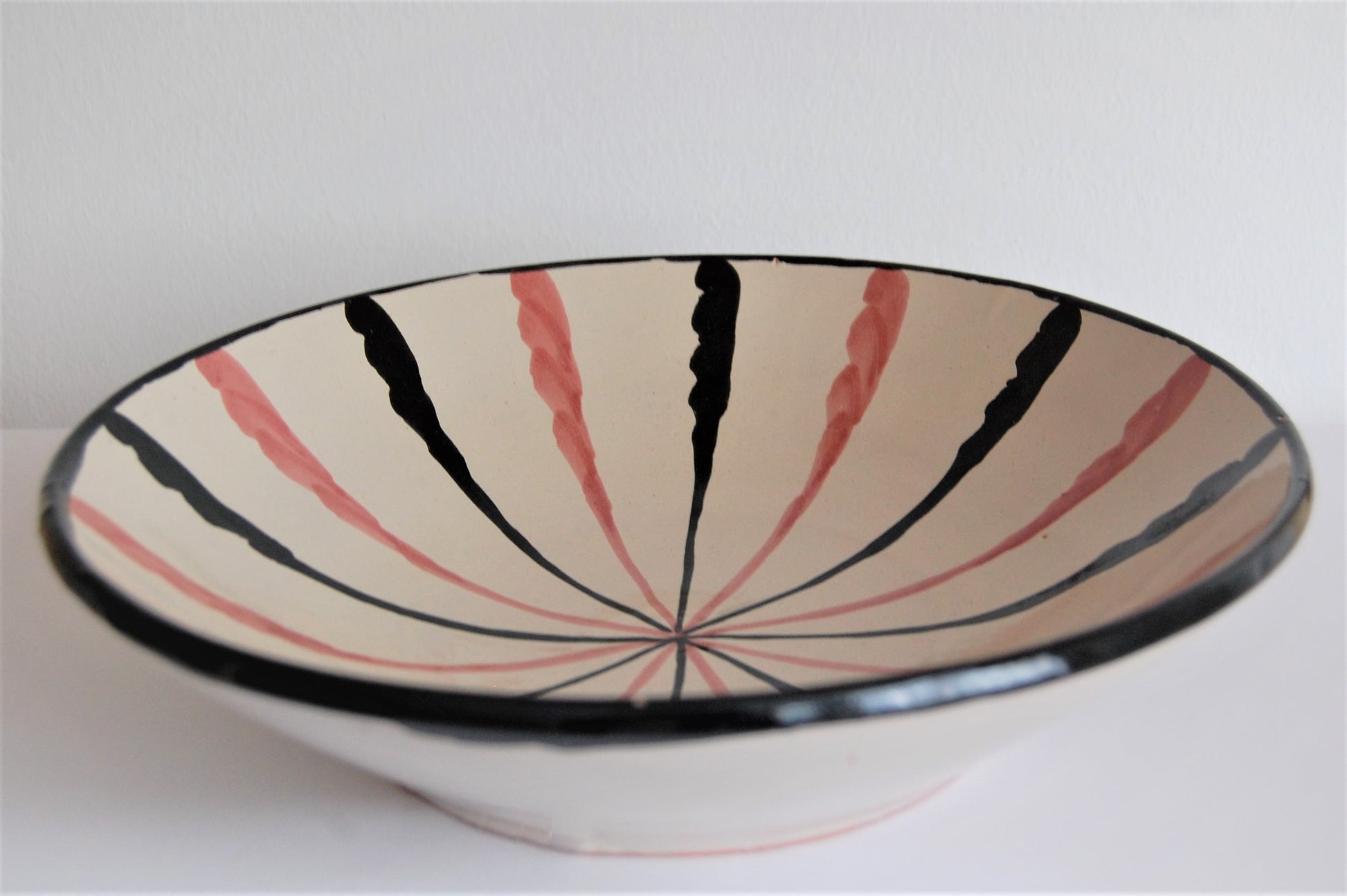 Ensaladera de cerámica pintada a mano con diseño de rayas. Disponible en colores lisos y en varias combinaciones de colores.